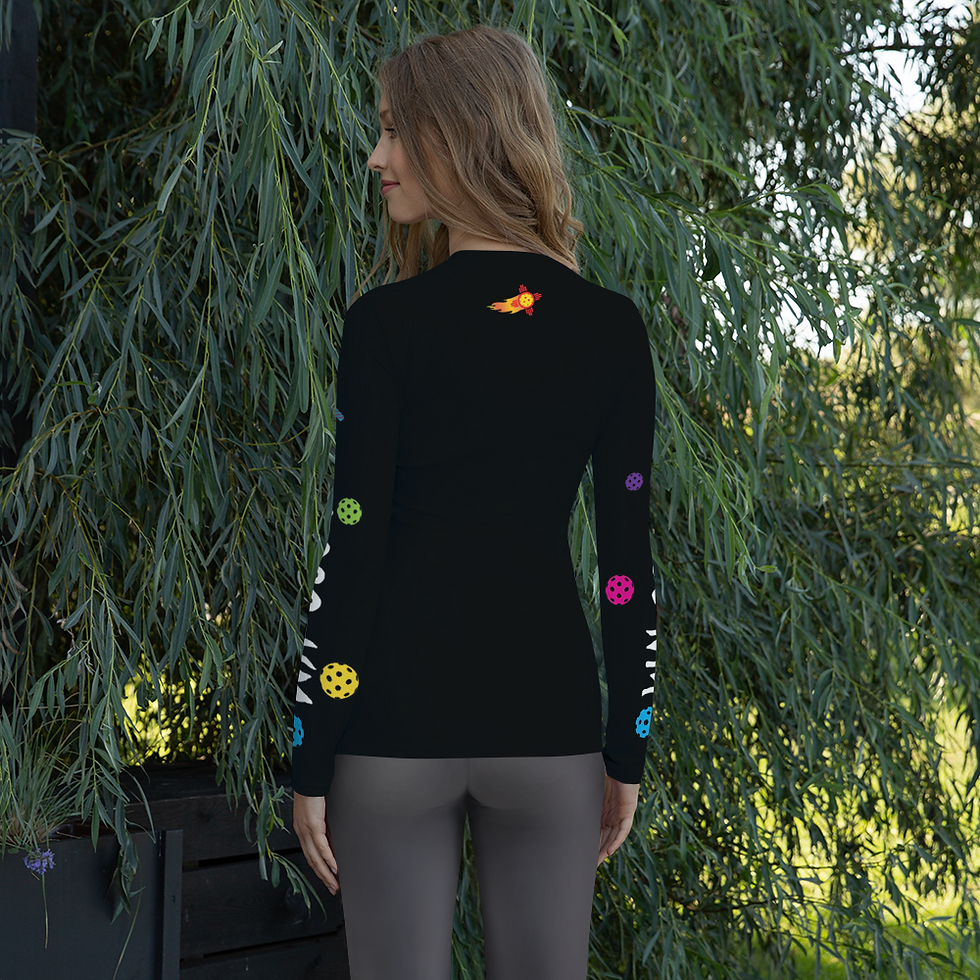 Pickleball Ruidoso Long Text Black Women's Rashguard